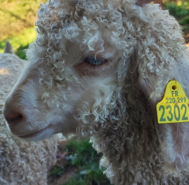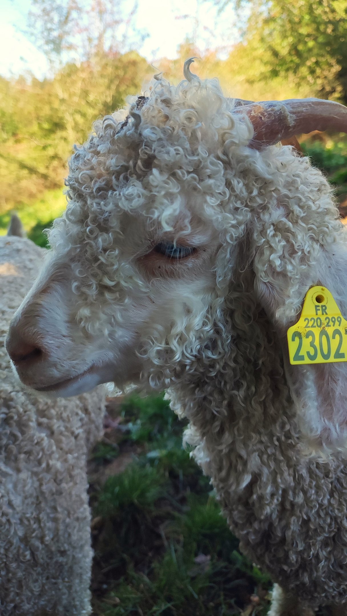 Angora goats are of Asian origin. They are quite small and demand gentle handling. They have a very affectionate and calm nature. They have been selected for centuries to produce an exceptional fiber called Mohair. It is the wool that grows on the goats at a rate of about 2.5 cm per month and is sheared twice a year.